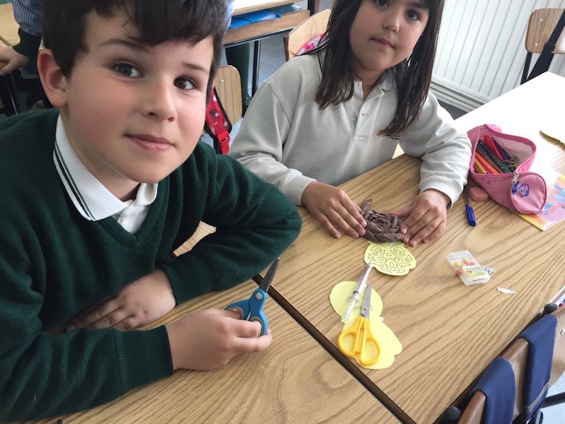 Los alumnos de Primaria han ayudado a las alumnas en las realización de las peinetas que llevarán las falleras.
